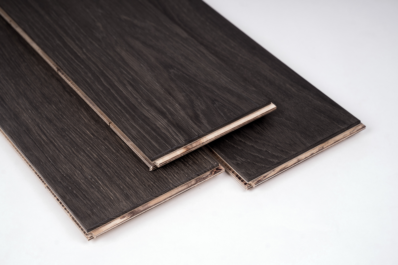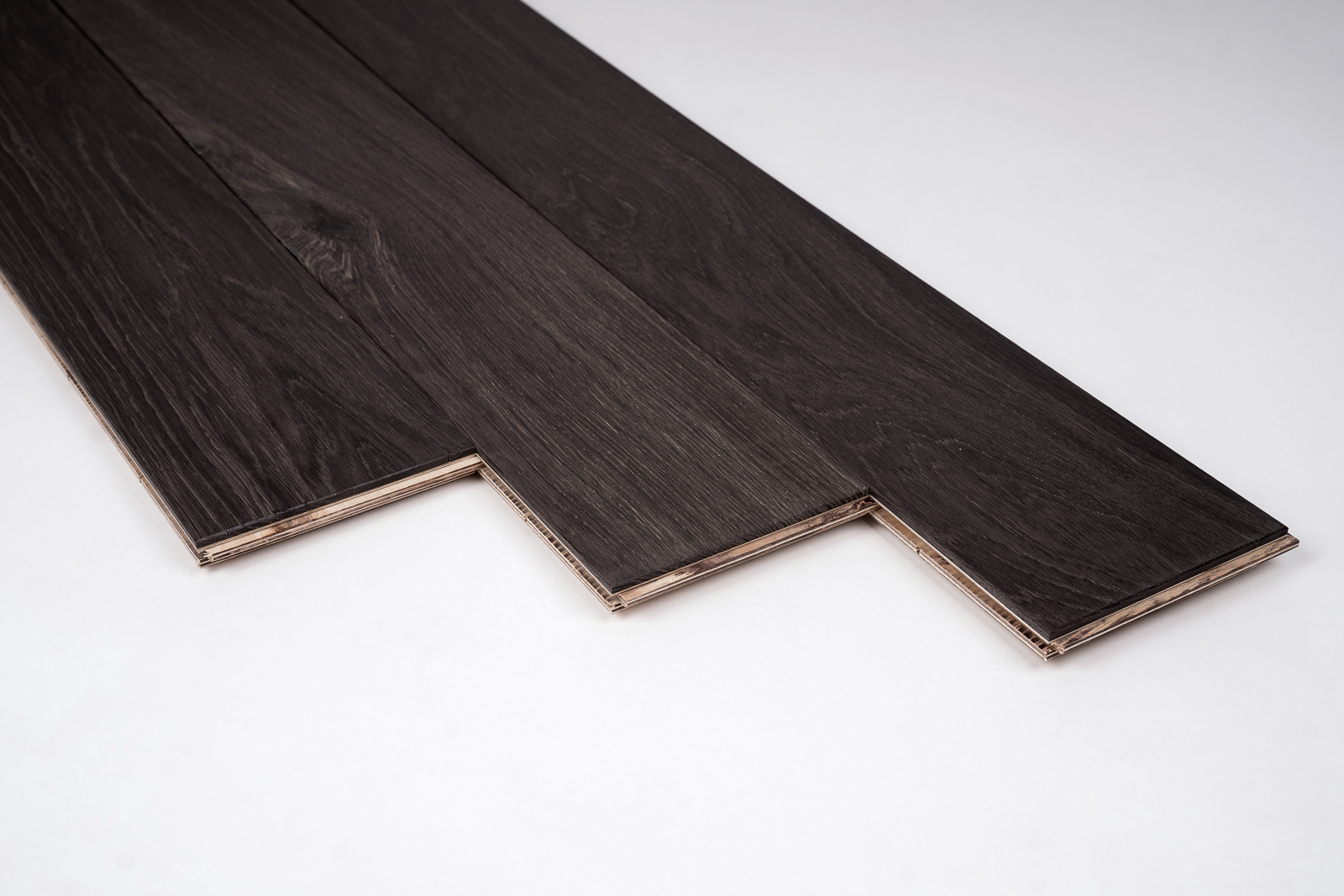 Engineered floorboards – bottom/base layer – birch plywood, top layer 6 mm – bog oak wood